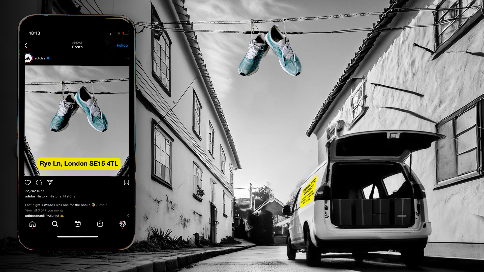 Drops will be released over Adidas' socials to reveal the location for giveaways. All are held under hanging shoes.